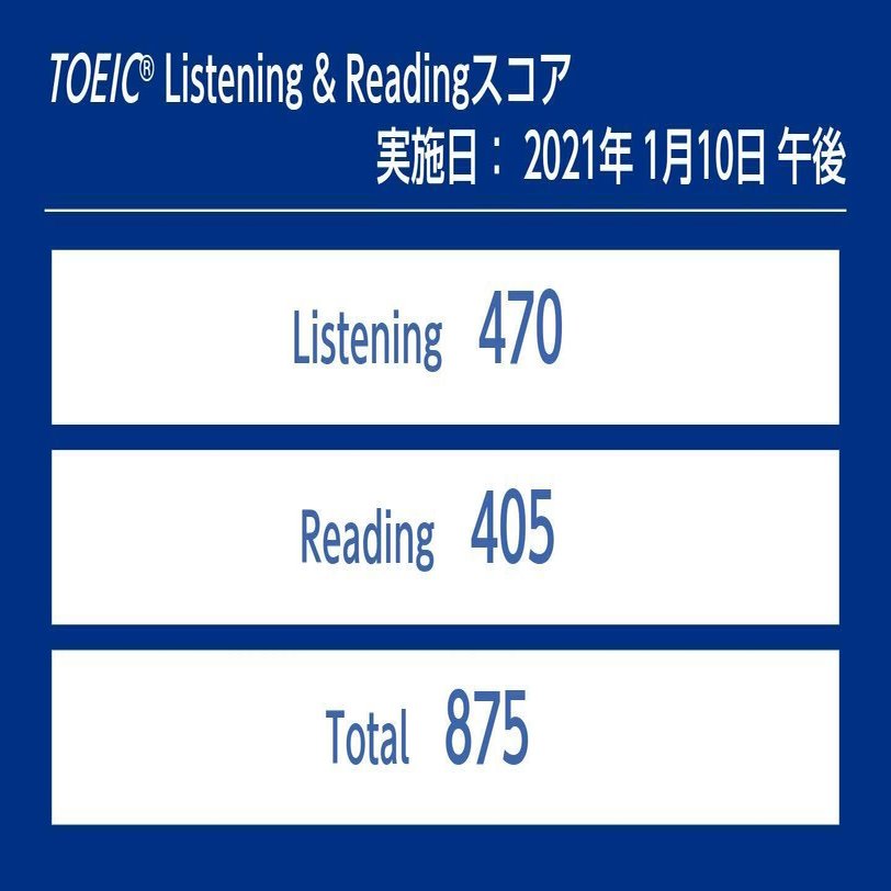 私は大学3年生(5年前)の時に、TOEIC875点(L470/R405)を取得しました。