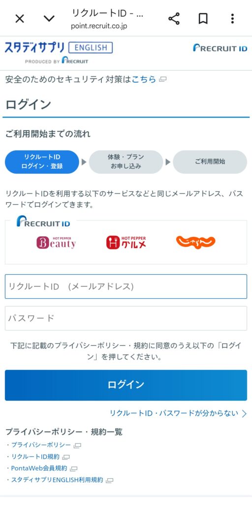 画面の案内に従って「リクルートID」でログイン(または新規作成)します。
