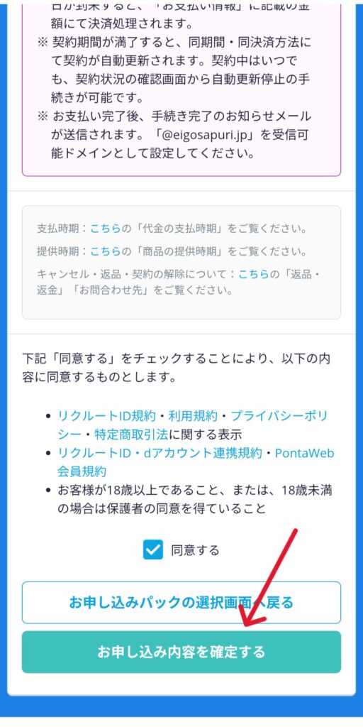 お申し込み内容を確認して、間違いがなければ「お申し込み内容を確定する」を押します。