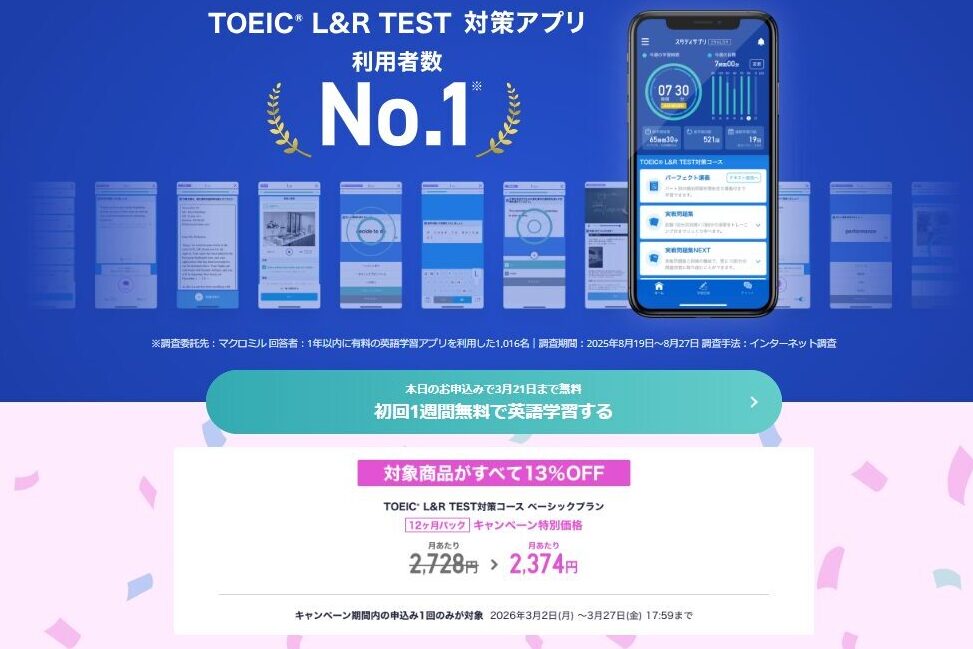 個人的には月額課金をオススメしていますが、もしあなたが「次の試験で絶対に600点の壁を越えたい!」と思っているなら、この特大キャンペーンが終了する3月27日までに始めるのが間違いなくベストタイミングです。